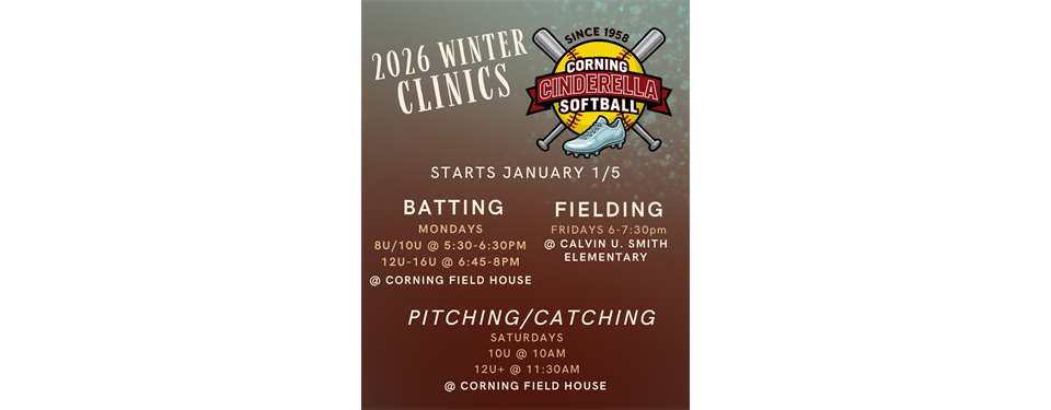 The Corning Cinderella Softball organization will transition its Pitching and Catching Clinics that began in late August with the beginning of the Fall Ball season will now transfer its date, time, and location to the Corning Cind...
